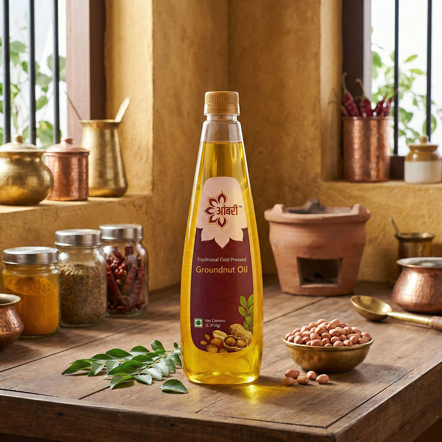 Aambri Cold-Pressed Groundnut Oil – 1 L is designed for regular household cooking, combining traditional extraction with modern purity standards. Extracted slowly using cold-press methods and double filtered, this oil delivers a clean, clear finish while retaining the natural taste and aroma of groundnuts.